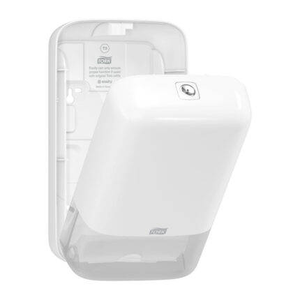 Dispenser pentru hartie igienica pliata Tork alb, solutia optima pentru toaletele cu trafic mediu si ridicat, datorita capacitatii sale ridicate, de 500 de portii. Carcasa dispenserului este fabricata din plastic ABS, ceea ce il face foarte rezistent la socuri. Caracteristici:
