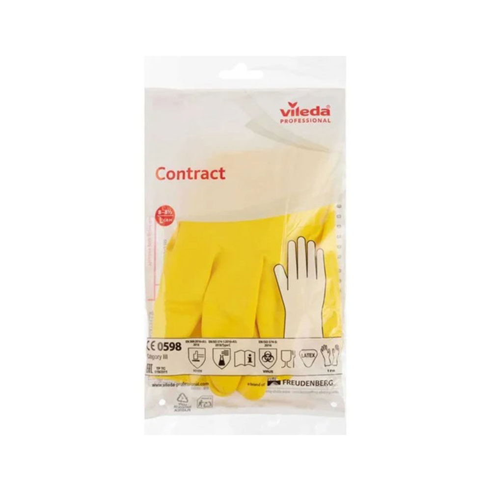 Manusi de menaj Vileda Contract sunt concepute pentru sarcini generale de curatenie si ofera protectie eficienta a mainilor in timpul utilizarii detergentilor si dezinfectantilor diluati. Aceste manusi profesionale sunt potrivite pentru utilizare in cladiri comerciale, domeniul sanatatii, HoReCa sau pentru activitati de curatenie zilnica.
