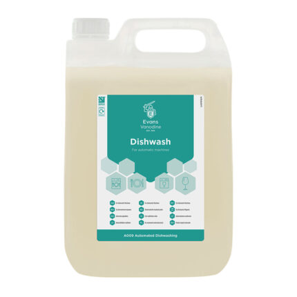 Detergent activ usor spumant pentru spalat vase Evans Dishwash in conditii de duritate scazuta spre medie a apei. Se foloseste in orice tip de masina de spalat vase.